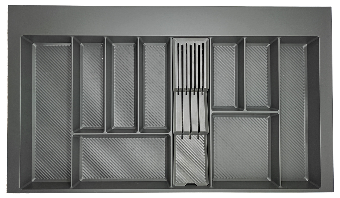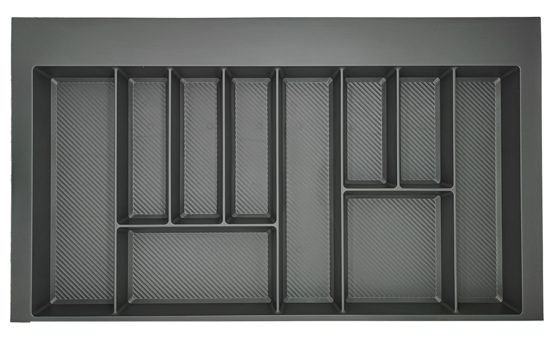 The antibacterial cutlery organizer in gray is designed with practicality in mind. Its shape includes several separate sections according to the size of the drawer, which allow for easy arrangement of forks, spoons and other utensils. Thus, the cutlery holder helps not only with order, but also with faster access to everything you need. We have six sizes, and the number of compartments increases with the size.